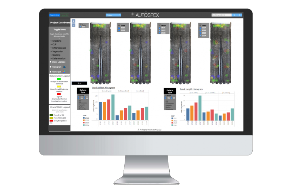 AUTOSPEX, a cloud-based platform, enables asset managers and civil engineers to quickly gather insights and proactively plan the repair of their assets. The platform helps them manage their budgets and assists them in ensuring the safety of high consequence structures during their service life and beyond.